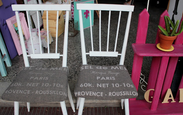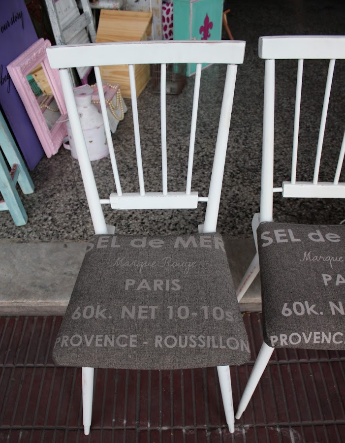 Par de sillas tapizadas con inscripcion Paris.