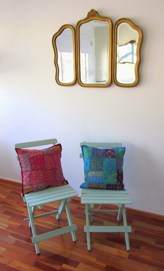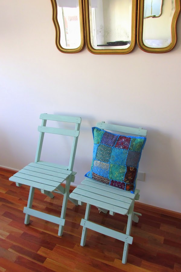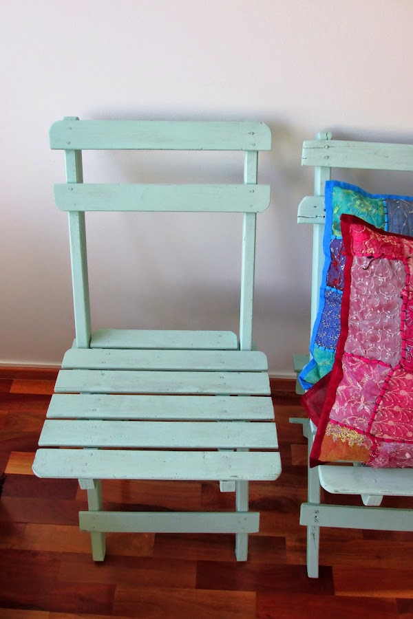 Sillas Rústicas para balcón, plegables en color verde pastel.