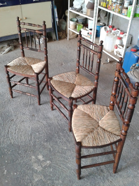 Hola amigos: Quiero contaros el trabajo del tuneo y reconstrucción de estas sillas, ya sé que podría haberlo hecho mejor, pero fueron uno de mis primeros trabajos y si ahora casi no sé nada imaginaos entonces. Lo cierto es que puse mi mejor voluntad y mucho esfuerzo. Hace unos meses encontré al lado de un contenedor cuatro sillas , dos estaban aparentemente aprovechables y a las otras dos les falt ...