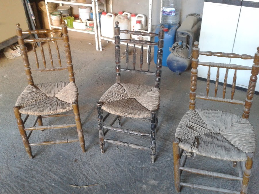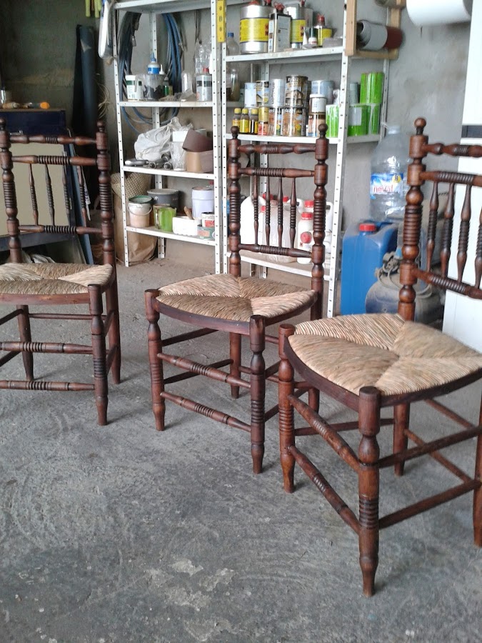 Como veréis estaban deterioradas y con una gran cantidad de barniz, después de un buena limpieza y un asiento nuevo de anea quedan preciosas para cualquier punto de la casa.