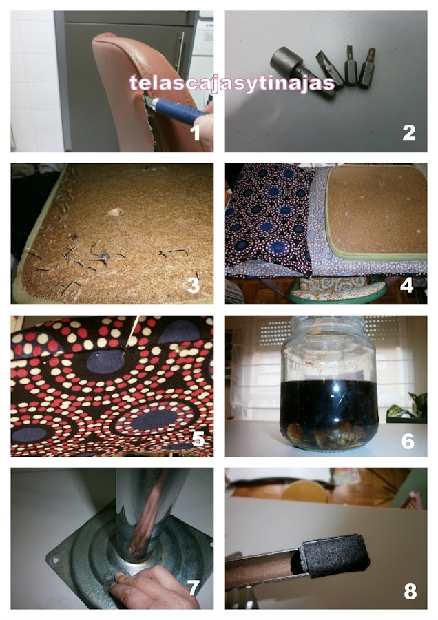 Con goma de zapatero y fieltro cubrimos las patas del sillón para no rayar el suelo con el uso.