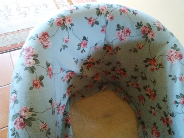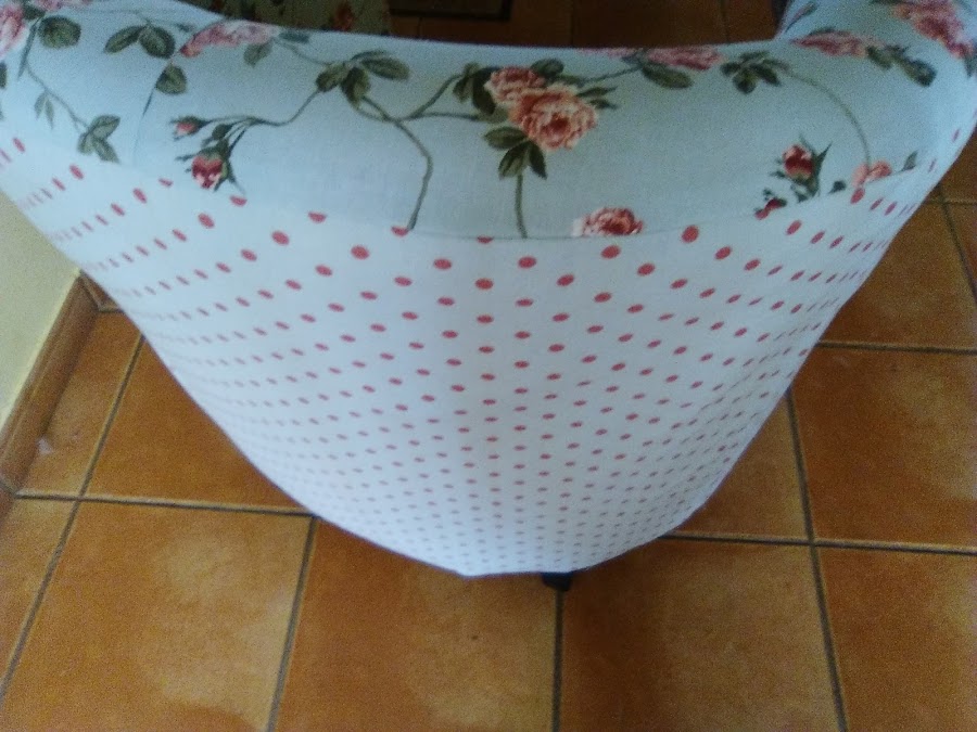 Cuándo está adaptada grapamos por la parte de abajo y confeccionamos el cojín reversible,por un lado de topitos y por el otro de flores