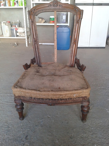 Empezaré por decir que posiblemente éste sea el trabajo, del que más orgullosa me siento hasta el momento. Sobrarán las palabras cuando veas en que condiciones se encontraba ésta bonita butaca, que por cierto es bastante antigua. Como el título del post indica, se encontraba junto a un contenedor de basura. Un año he tardado en recuperarla, pero ha merecido mucho la pena. No me demoro y te muestro ...