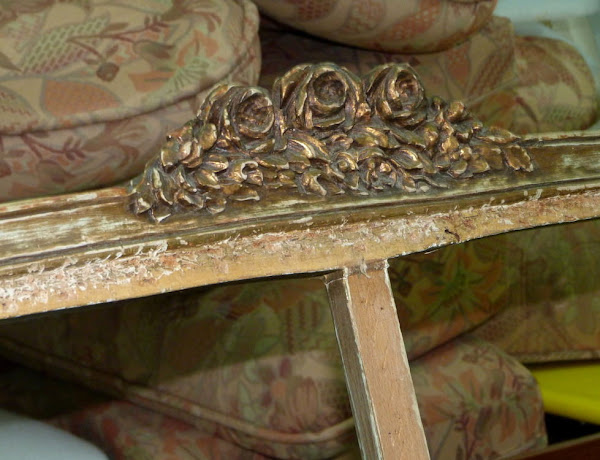 Os enseño el sofá tal y como llegó a nuestras manos y ya destapizado. La estructura era de un color oro viejo sobre otras capas de pintura: