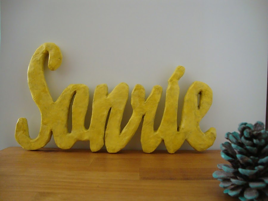 Con este post aprovechamos para participar en el Reto desvanero, tema que tuvimos el honor de proponer por haber sido los ganadores del reto de febrero. Decidimos que el tema fuera piensa en positivo y os mostraremos como hicimos el pasado verano un letrero de cartón y papel mache con la palabra SONRÍE y del que ya os mostramos imágenes cuando participamos en el Desafío color amarillo (podéis ver el post aquí), Lo tenemos colocado encima de nuestro cuelga llaves, en el recibidor de casa. Al tratarse de un diy antiguo no tenemos fotos del proceso, así que intentare explicároslo lo mejor posible ;-D.