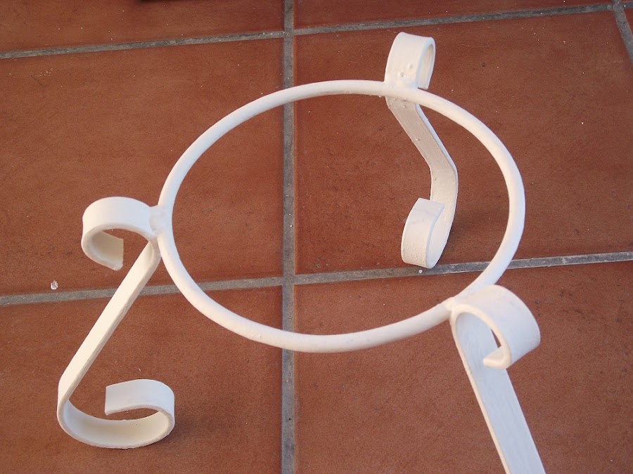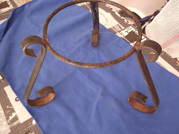 Éste es el soporte, llevaba años en el trastero porque no me gustaba usarlo como soporte de las macetas, con el agua se oxidaba y manchaba el suelo. Hasta que se me ocurrió una nueva ocupación para él, y para ello tenía que cambiarle el aspecto.