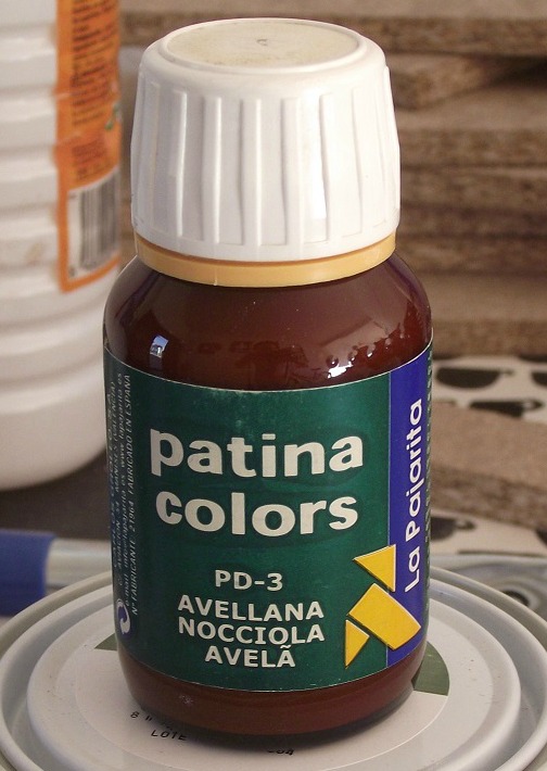 Para finalizar le di una pátina que tengo hace mucho tiempo pero que no había usado nunca, ni siquiera sé si se sigue fabricando. Cuando se coge una rutina parece que te sientes más segura haciendo las cosas de esa manera, y yo aprendí a elaborar mis propias pátinas y casi nunca utilizo pátinas comerciales. Así es que decidí ver qué tal funcionaba esta marca y me ha encantado: se aplica bien, se retira estupendamente y el color es muy, muy bonito.