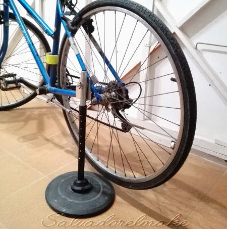 La forma de montaje se entiende bien (creo) con las imágenes, se monta sobre la horquilla trasera del cuadro, se aprieta la palometa y ya tenemos la bici con una rueda al aire para poder limpiar y engrasar la cadena y sistema de frenos de forma cómoda y práctica.Fácil, barato y práctico.