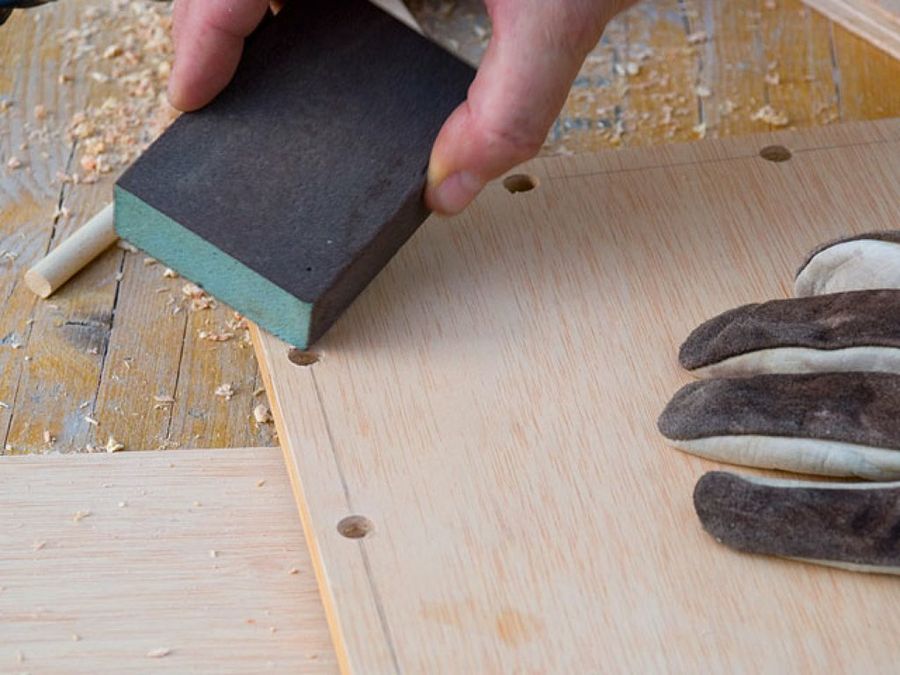 Los acabados son muy importantes. Lijamos cuidadosamente el borde de cada agujero, ya que será casi imposible hacerlo cuando hayamos colocado los barrotes.