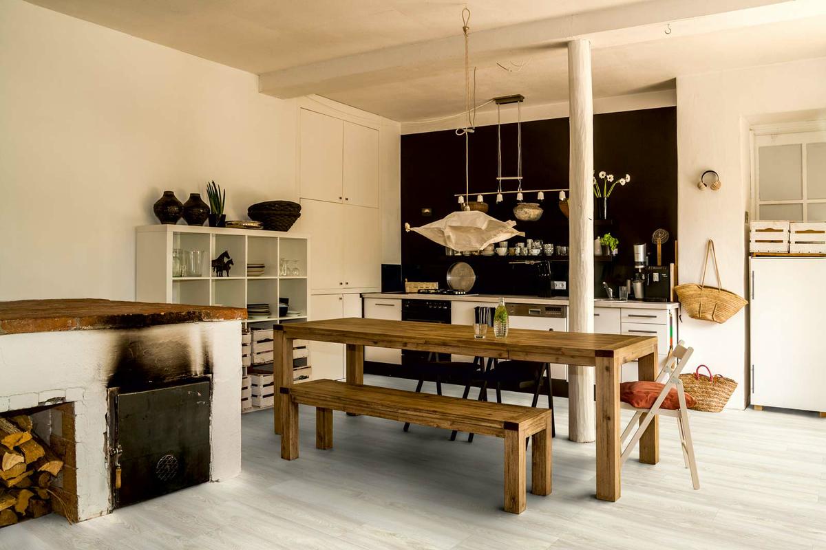El estilo nórdico y la filosofía DIY van de la mano. Muebles restaurados, piezas decorativas hechas con troncos... Otra razón por la que el aspecto de parquet envejecido tiene tanto éxito. Échale un vistazo por ejemplo al siguiente ejemplo.