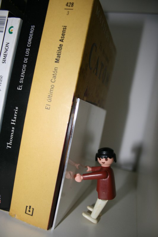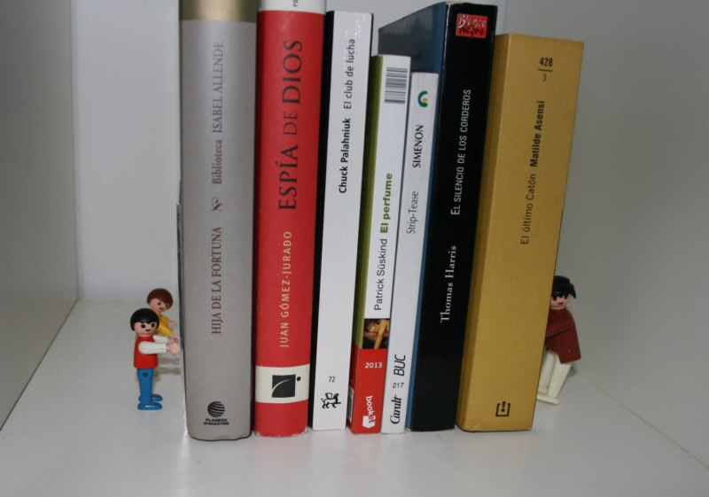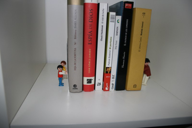 Tengo en casa muchos muñecos Playmobil y después de hacer el organizador con ellos, me he creado estos sujetalibros.