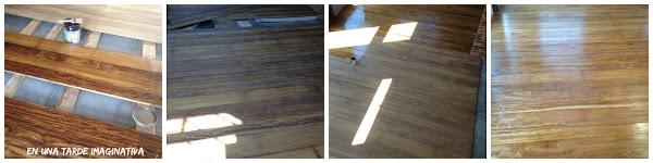 Aqui ya le apliqué barniz especial para suelos de madera de Bruguer , tres capas para ser exactos y entre capa y capa ?lijada?. pfff vaya trabajo?la muñeca al final de la noche me dolia pero un buen descanso lo arregla todo!!!!