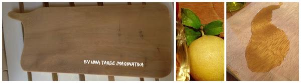 5-Proteger la tabla con aceite mineral. Yo usé aceite de linaza sin secantes ,porque es más natural. (Como en la pared de ladrillo visto que hicimos)