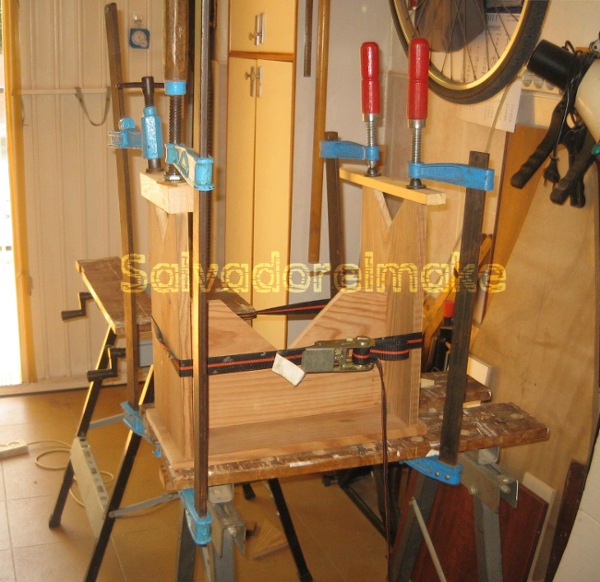 Con todas las piezas listas y bien acabadas procedemos al montaje, yo he usado tubillones y cola pues dan buen resultado, lo único es tener paciencia con el encolado apretando bien las piezas con gatos y respetando el tiempo de secado de la cola (normalmente de dos a tres horas para poder mover la pieza y 24 para usarla).