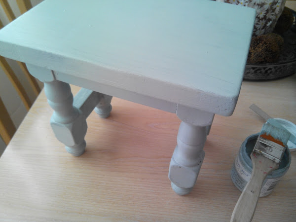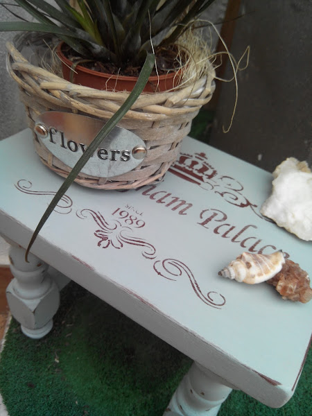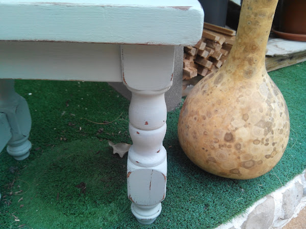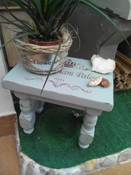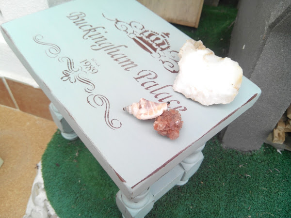 La he pintado con este tono de Americana Decor, y con dos capitas finas ha habido más que suficiente para cubrir el tono original de la madera. Una lijadita entre capa y capa y para finalizar unos estarcidos de dos de las últimas plantillas que he adquirido. Como quería que quedara con efecto rústico, unas lijaditas por las patitas y el resto de recobecos y lista tras una mano de cera de la misma marca.