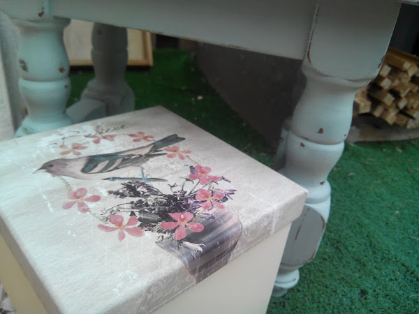 Este taburete lo iba a tirar el jefe de mi hermano, que con la mudanza todos sabemos que nos deshacemos de miles de cosas y ya de paso limpiamos recuerdos y trastos que ya no les damos el valor que en un principio tenían. Pero como los que me conocéis ya sabéis que el lema MayArt es "No lo tires que ya veré qué hago con ello", pues a mi casa que ha venido a parar esta piececita.