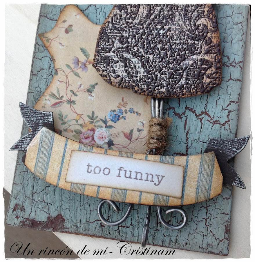 Pero hoy quiero enseñaros el fondo de este tag y es que me tiene enamorada este tipo de craquelado que consigo utilizando un medium craquelador de la casa Decoart.