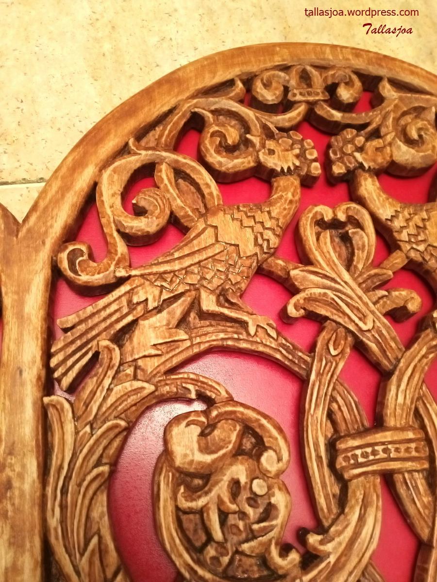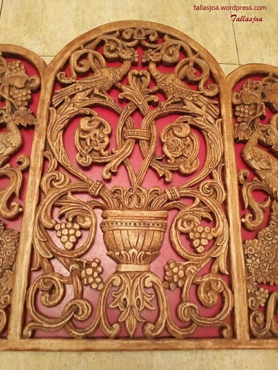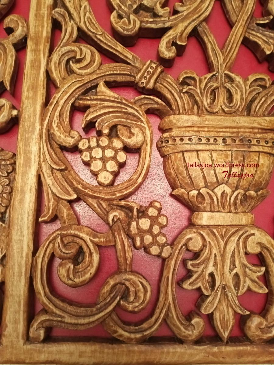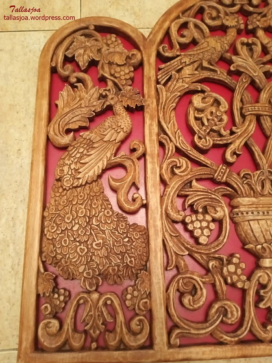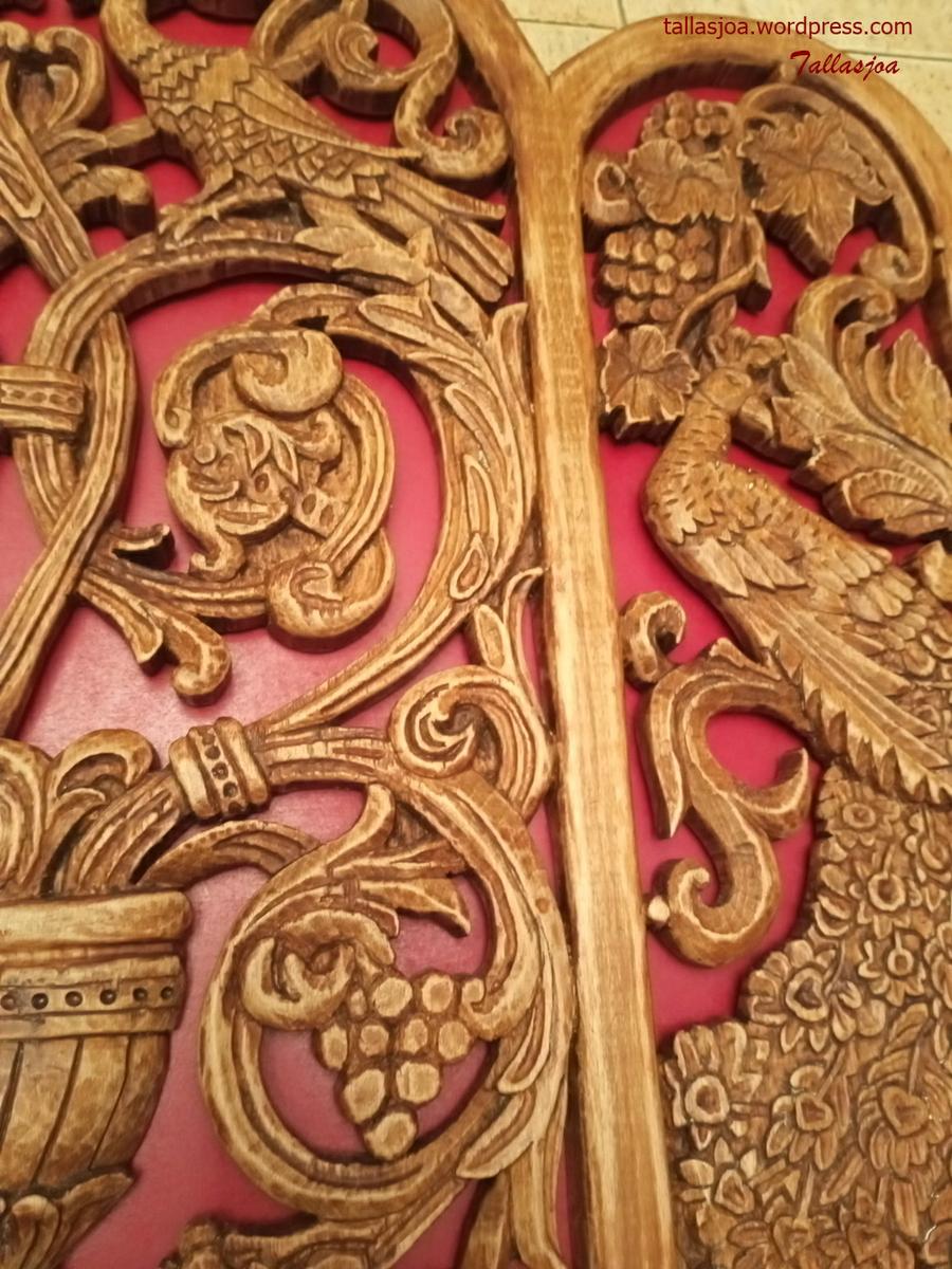 Como veis la talla se basa en pavos reales y elementos vegetales como vides y racimos de uvas.