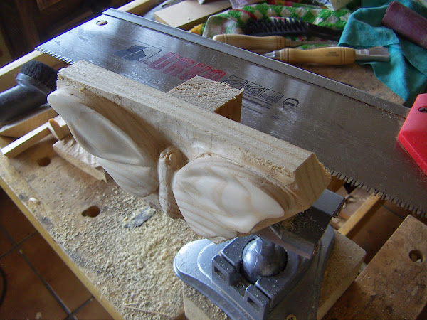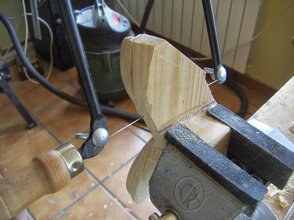 Bueno...ya está la mitad del trabajo terminado..ahora hay que tallarla por debajo y lo primero que hay que hacer es recortar la madera que nos sobra.
