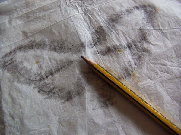 La copié primero en papel cebolla y, para pasarla a la madera, como no tenía papel de calcar, con el lápiz la emborroné por detrás..