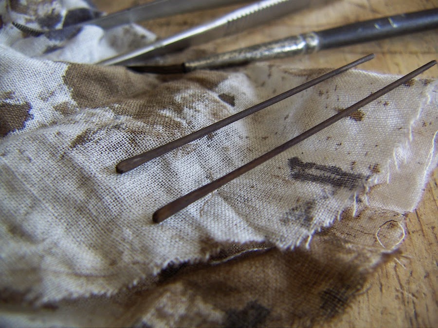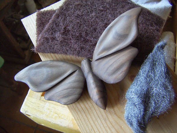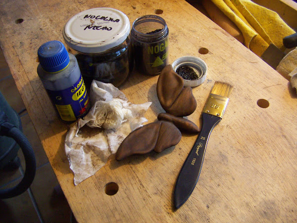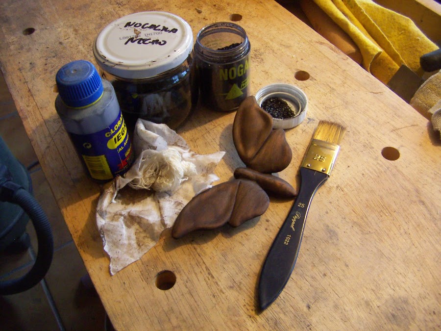 Las polillas son marrones así que la teñiré en esta ocasión con nogalina. La nogalina se disuelve en agua y aquí es cuestión de hacer pruebas hasta obtener el tono deseado . Yo le añadí también un poco de tinte negro al agua, pero..casi nada.