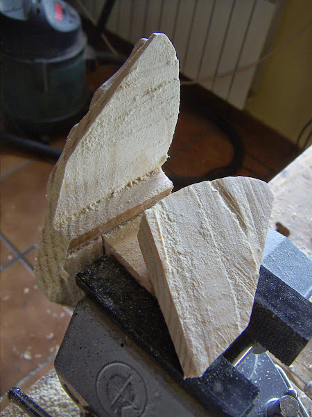 También hicieron el corte justo con el grosor final, osea...muy fino y.....por poco se quedan sin ala ;-D. Yo, para curarme en salud lo haré mucho más separado ya que prefiero tener que eliminar más madera que quedarme con una de las alas en la mano después de tanto trabajo...pero, aqui, cada uno , puede hacerlo como quiera.