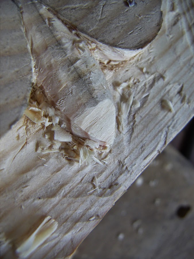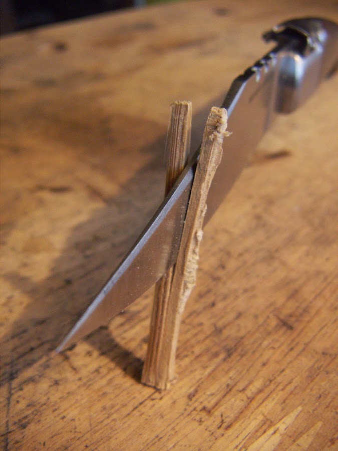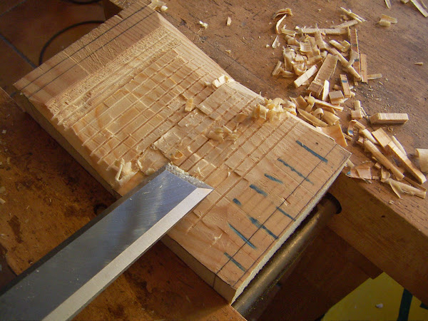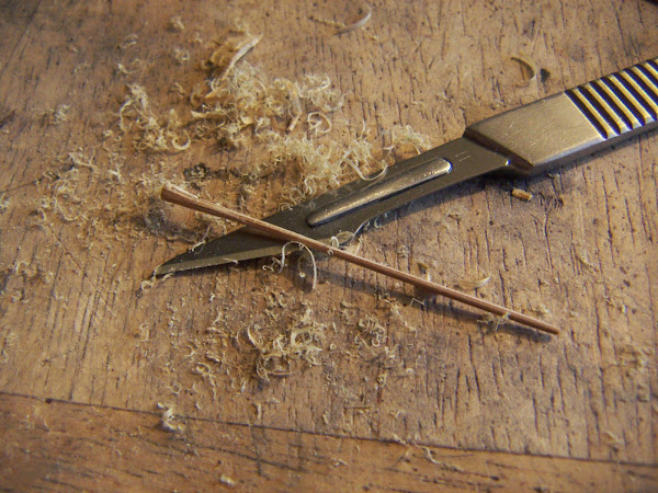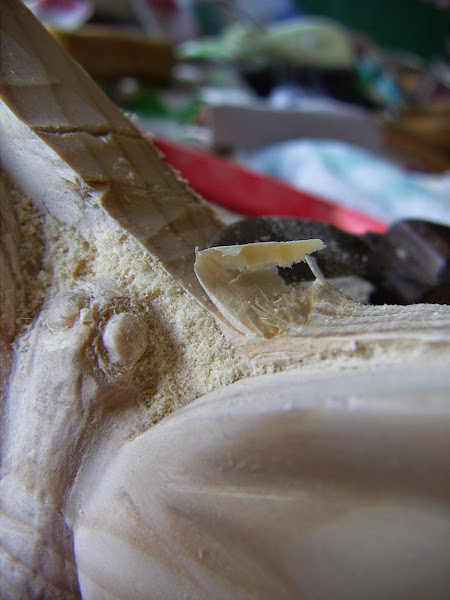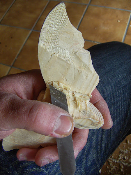 Es mejor ir haciendo virutas muy finas poco a poco. Esto se haría mucho mejor con unos buenos cuchillos de tallar...pero como no los tengo..me apaño como puedo..