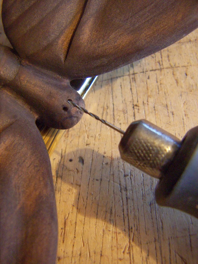 Encolo las antenas en su sitio y, como acabado final , le he dado una mano de aceite de linaza diluido con esencia de trementina o aguarrás al 50%.