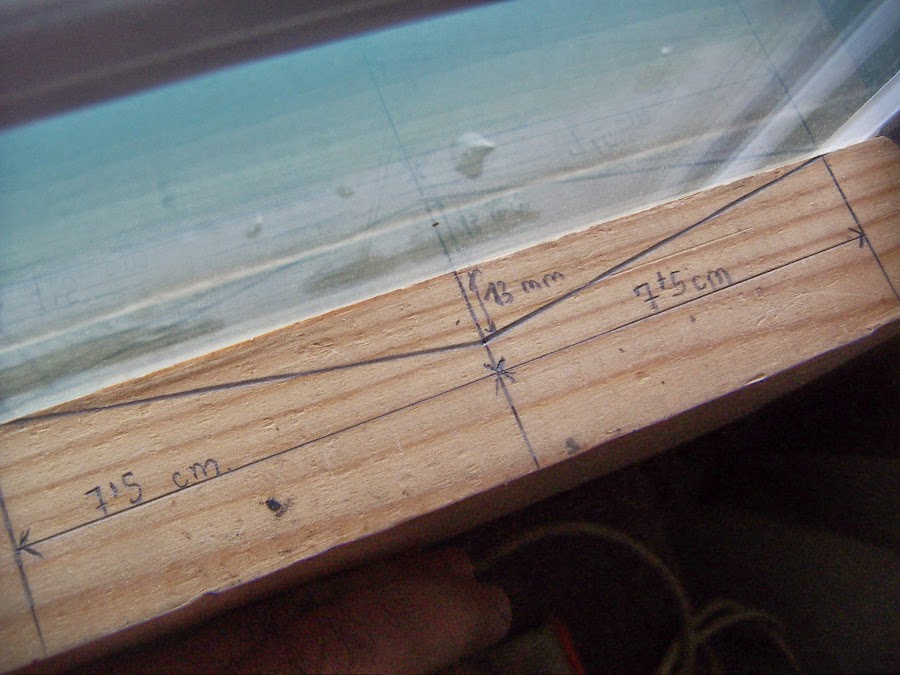 Lo primero que hago es marcar el centro y trazar unas líneas que serán el ángulo de las alas.