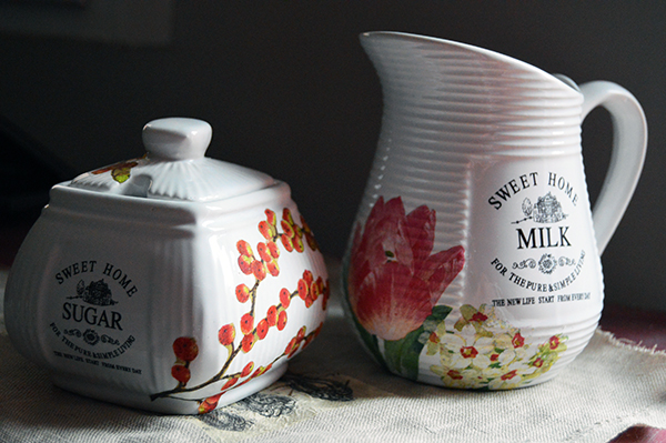 Cogemos las tazas, el azucarero y las jarras para irnos a Moda Shopping. Junto a las chicas de DIY Show montamos un taller en el que podrás aprender a decorar tu vajilla con una técnica que también se puede usar en tela. Te enseñamos a hacer decoupage y algún que otro truco para poder lavarlo. Aviso que a las alumnas del último curso les encantó y además tengo un montón de nuevas servilletas para que cada alumno/a personalice el suyo.