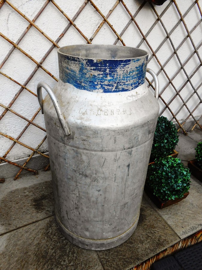 He querido resaltar todas las inscripciones que traía la cántara grabadas, como el número de unidad, la fabrica de donde viene y los litros de capacidad, creo que le da personalidad a la pieza y explica un poco el origen, que aunque no sea una pieza de anticuario es difícil verlas habitualmente.