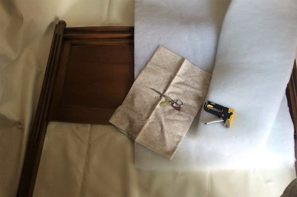 Simplemente con esto podréis realizarlo, yo he necesitado además un destornillador para poder desmontar el tablón del centro del cabecero y he tenido que coser la tela, pues he elegido una más estrecha que el cabecero.