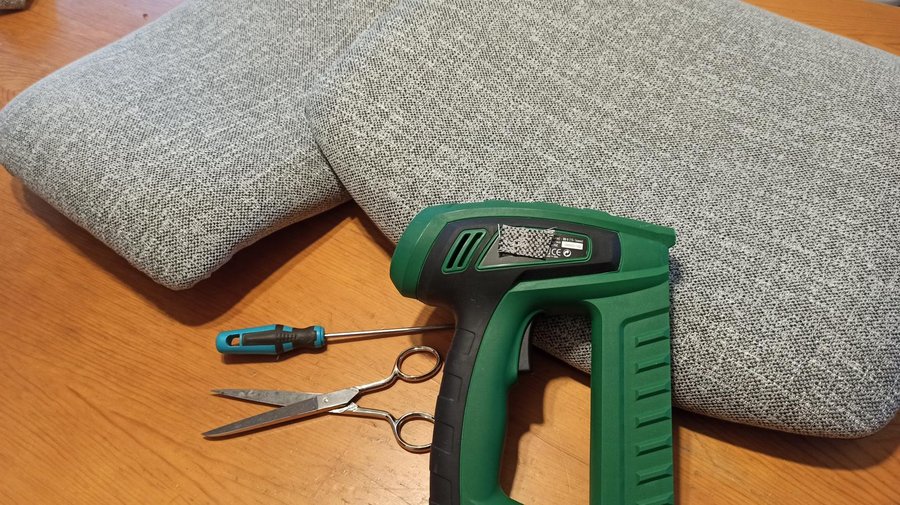 Por lo demás sólo hubo que quitar las grapas, retirar el tejido viejo y con él cortar el nuevo utilizándolo a modo de patrón.