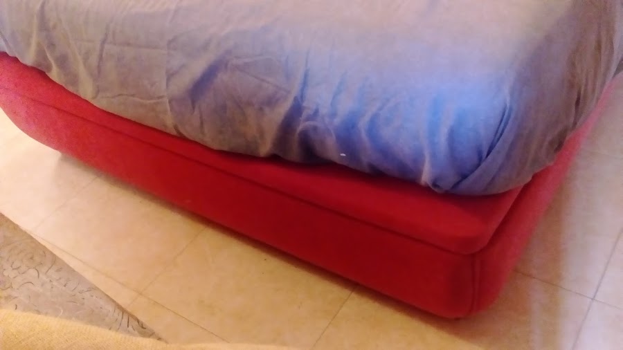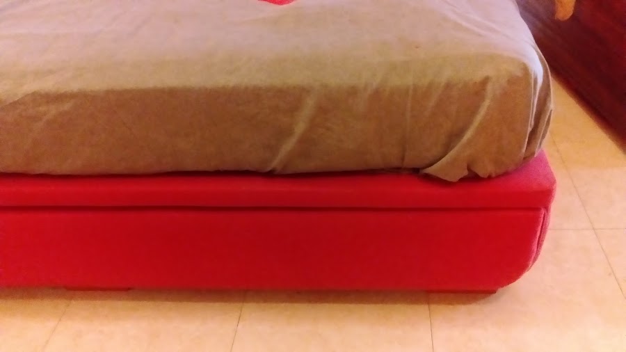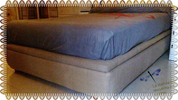 En la foto inferior,ya se ve mas en detalle el tapizado de un lateral. Yo no le he quitado el tapizado anterior, ya que, en el caso improbable de que un día lo quiera recuperar, podré hacerlo y, además, el canapé va así doblemente protegido.