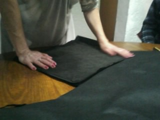 Con la medida tomada, Marilú cortó las piezas de tela para los asientos y las piezas de TNT (una especie de tela de papel, muy versátil) para la terminación.