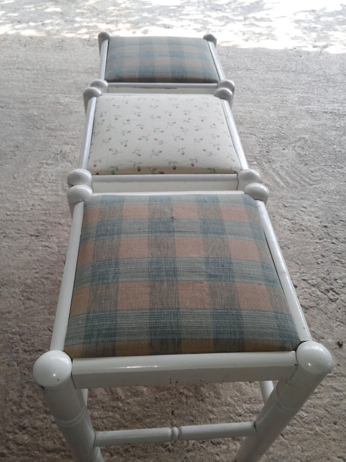 Tan solo hay que quitar el asiento de la banqueta y grapar la tela haciendo un poco de tensión para que no queden arrugas. Volvemos a poner el asiento y listo!!
