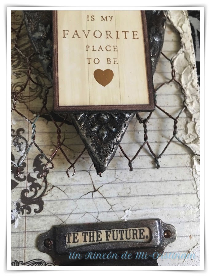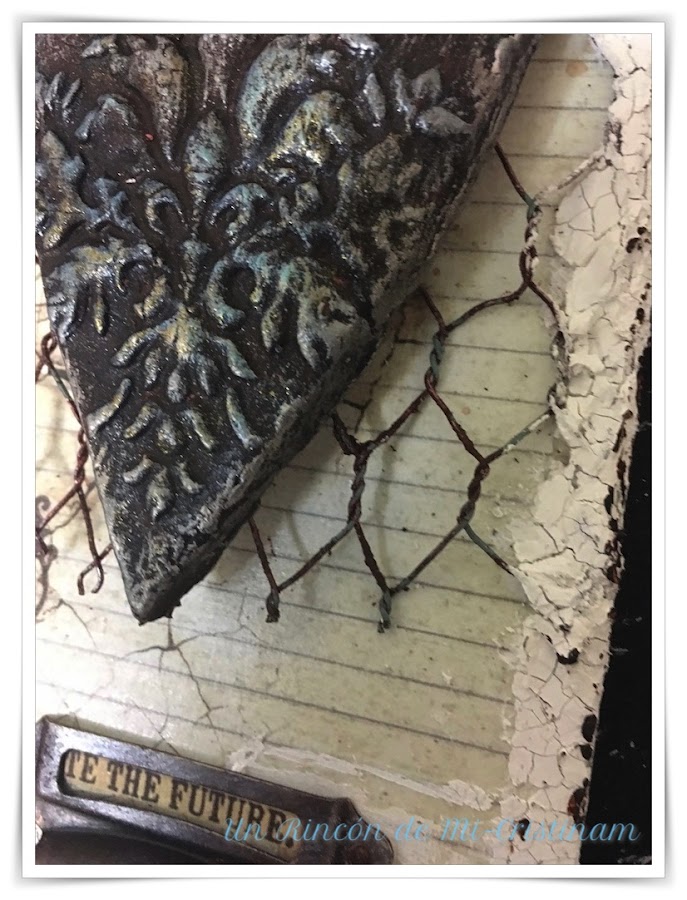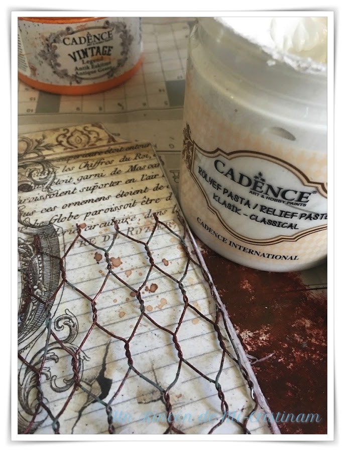 He añadido un trozo de malla de gallinero el cual previamente he realizado la técnica del oxido que os mostré en una entrada de este blog el paso a paso.
