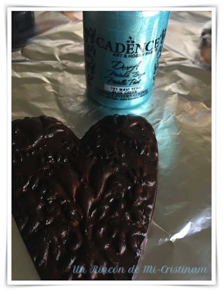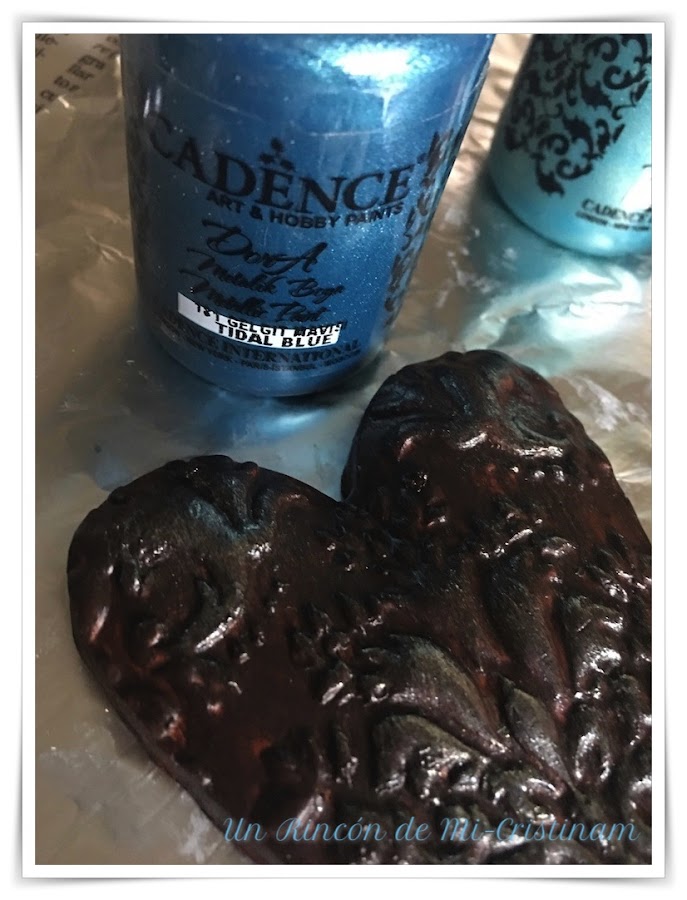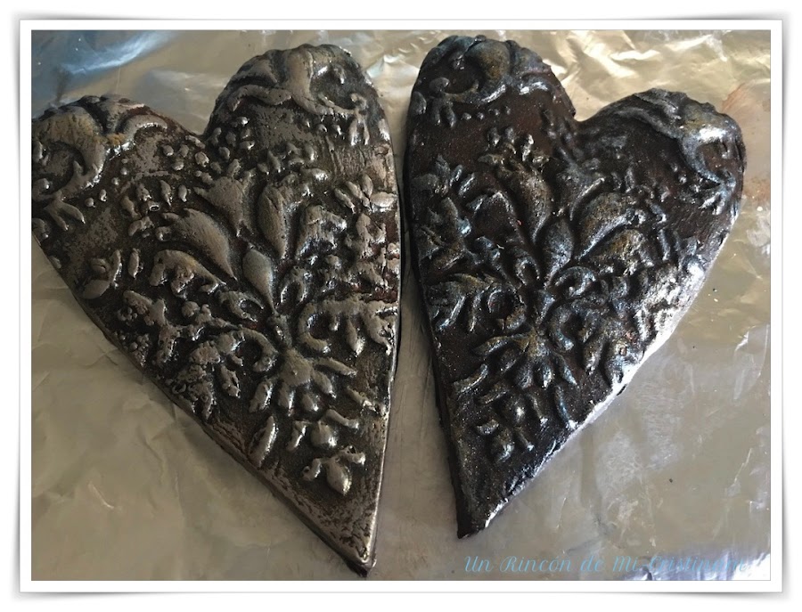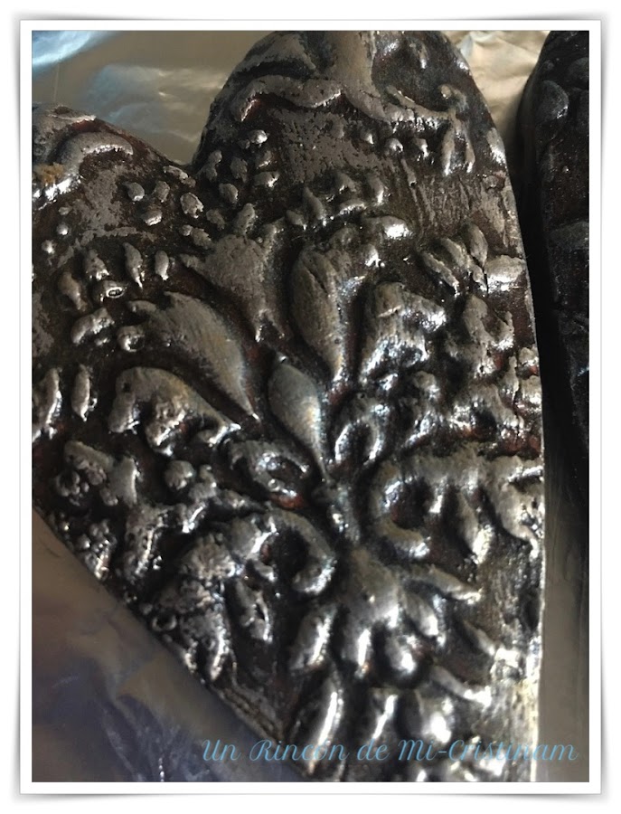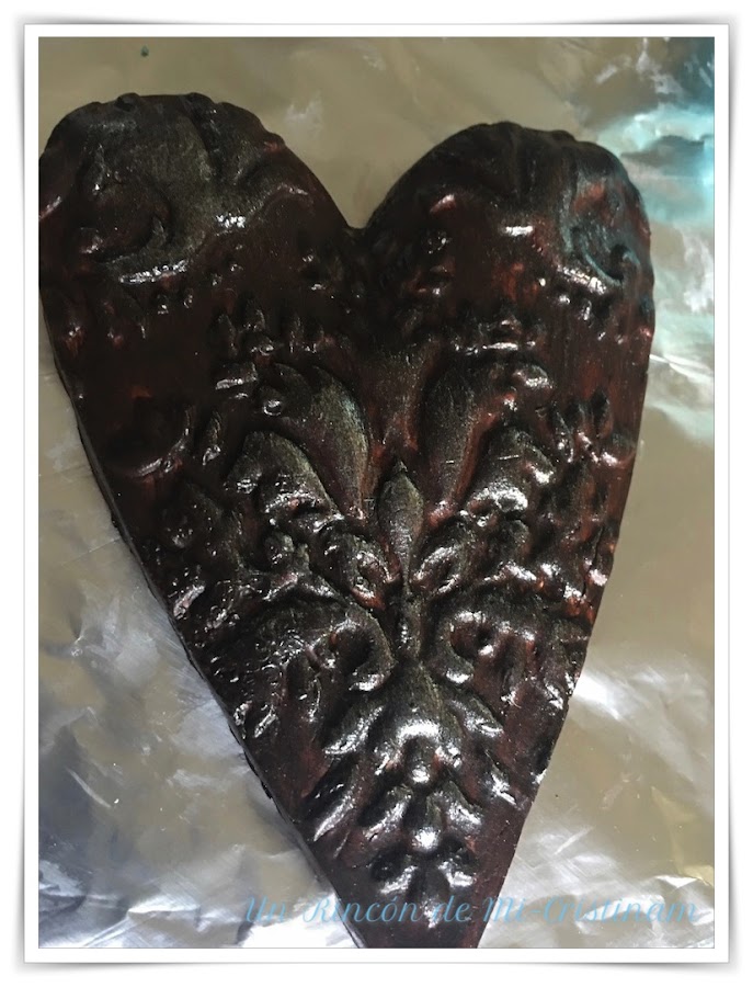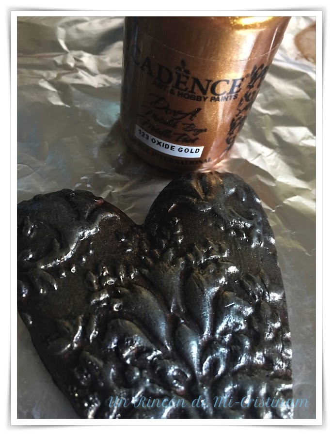Con la Dora Metallic oxido Gold he dado color, para esta pieza he puesto mas cantidad que el corazón.si os fijáis parece que he puesto pan de Oro