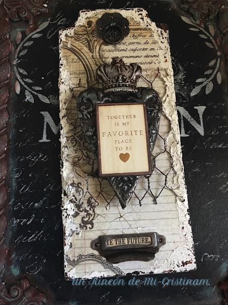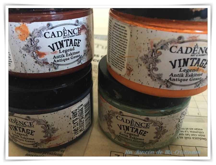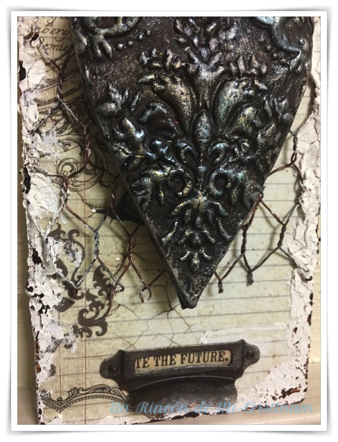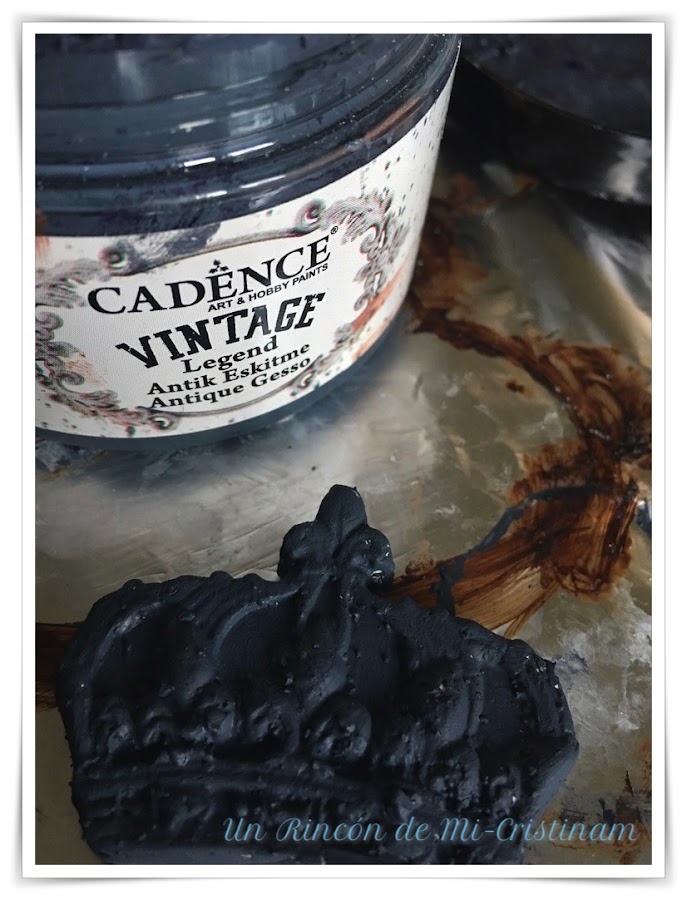 En las esquinas he puesto pasta de stencil de forma irregular.En algún sitio añado pasta craqueladora.