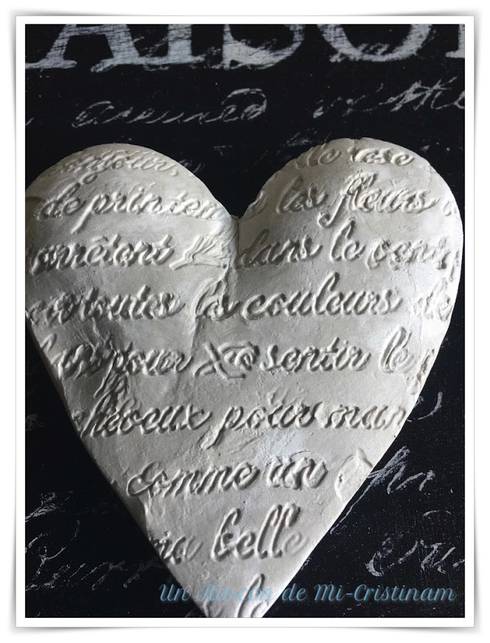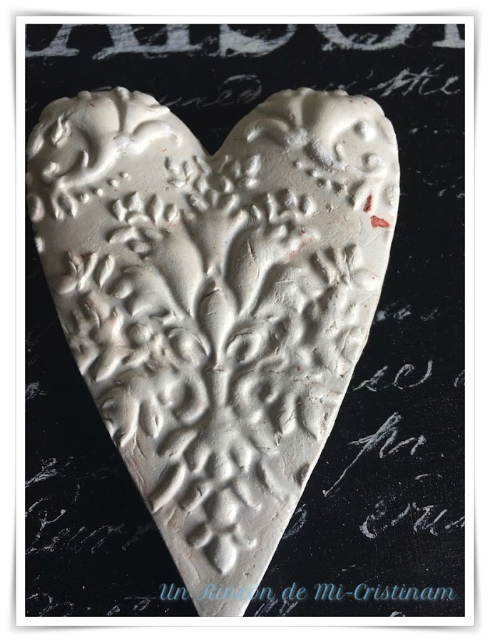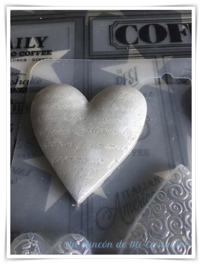 En un molde de plastico con forma de corazón y pasta de secado al aire reproduzco el motivo que quiero poner en mi tarjeta... en la foto he puesto un corazón que luego no he usado .... sobre la marcha.