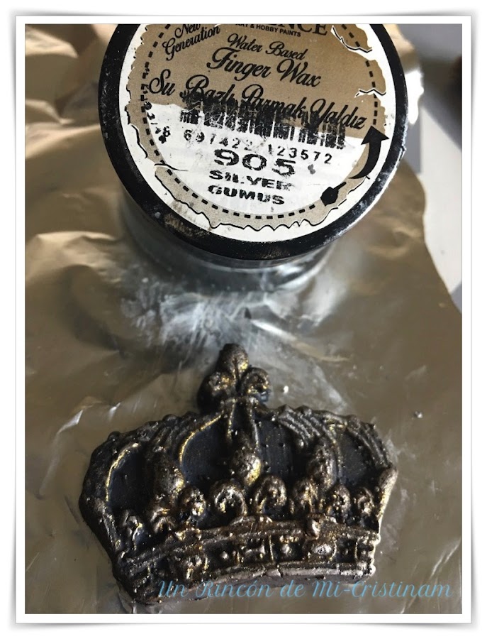 Y me ha parecido buena idea contrastar con cera plata la pieza.. lo doy con el dedo.