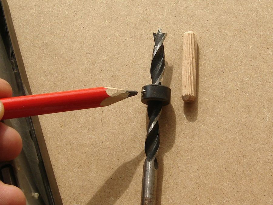 Para limitar la profundidad del taladro, ponemos a la broca este accesorio, que una vez atornillado hará de tope. Ajustamos el alcance del agujero a la longitud del tubillón que vamos a insertar.
