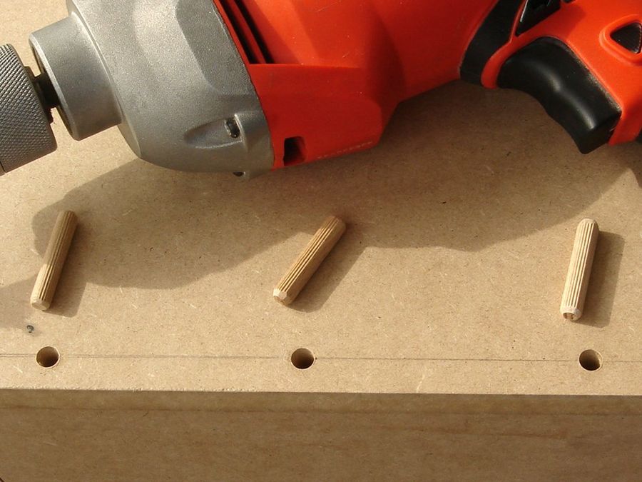 Presentamos la espiga o tubillón, para decidir el diámetro adecuado conforme al grosor del tablero. Hay que taladrar el agujero de mayor calibre que podamos hacer sin debilitar la parte inferior. En este caso, utilizaremos un tubillón del número 8.