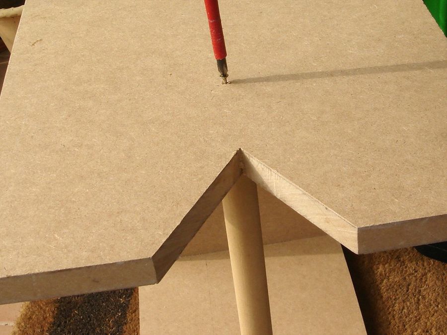 Como siempre, un buen trabajo requiere mediciones exactas. Dado que el tablero superior sobrepasa un poco las patas, que es donde encajarán los tubillones, llevamos el punto medio al tablero superior.