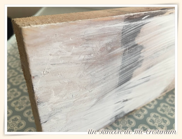 Deslizo el taco de madera por el lateral pintado sobre mi pieza a decorar...