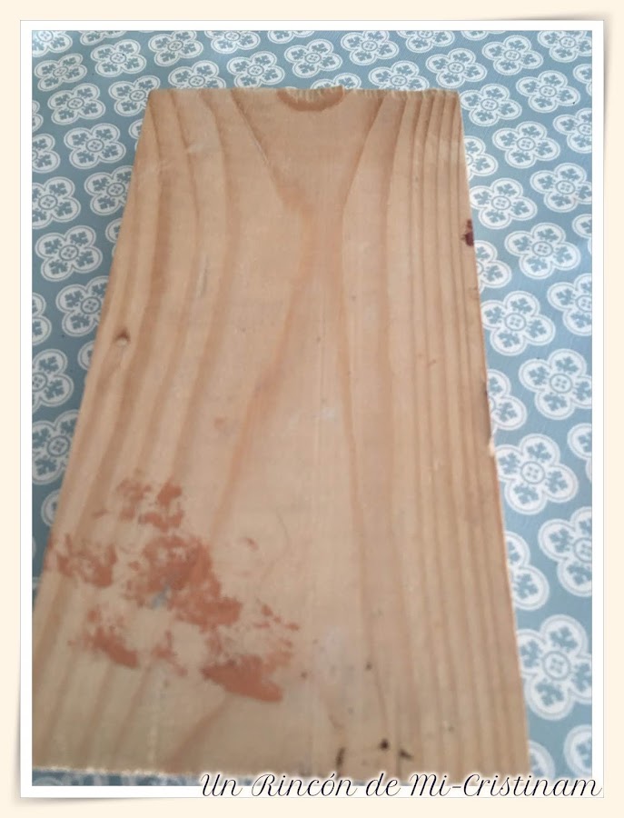 Como veis es un trozo de madera normal , es importante que el tamaño se adecue a vuestras manos y superficie donde vayáis a ponerlo