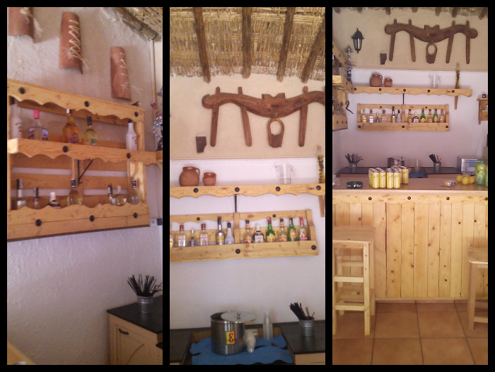 Me doy el gusto de enseñaros y con el permiso de su dueño, como ha decorado su peña, está toda hecha por él, reciclando y trabajando los palets, ha hecho una barra, bancos, estanterías, ha metido luz, agua, antes era un pajar y con muy buen gusto y es que es un manitas la ha dejado preciosa, sin perder ese aire castellano que le dan los utensilios de labranza que decoran este espacio.