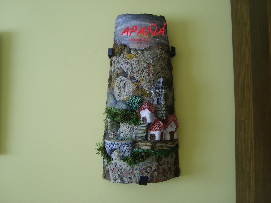 Las tejas están decoradas con papel de arroz que ha sido decorado y pegado sobre la teja. Hay que hacerle dos agujeros para cuando estén terminadas, ponerle una cuerda y colgarlas. Luego se pintan, dejamos que se sequen y las craqueamos; pegar el papel como este no cubre toda la teja hay que seguir el dibujo con los pinceles o con ayuda de una esponjilla por ultimo se les da barniz "satinado ...