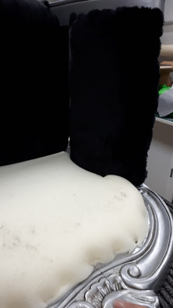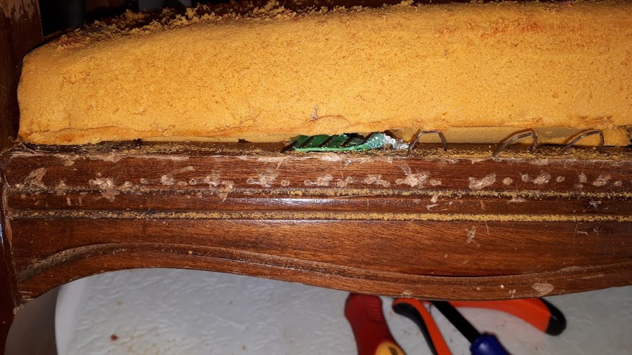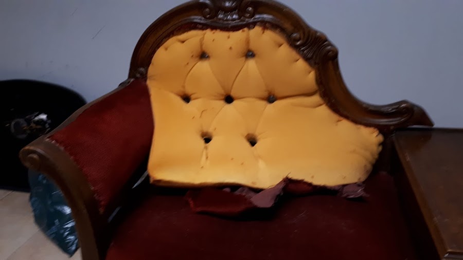En primer lugar destapizar completamente ya que la tela está muy deteriorada y la espuma aplastada.