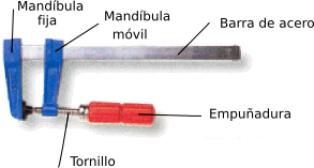 Muy usada en trabajos de corte en maquinaria estacionaria o en armado de piezas medianas o grandes. Esta es una prenza metálica que se fija a una superficie y es activada por un mecanismo ofreciendo sujeción vertical u horizontal según se necesite. En la punta de sujeción tiene una goma para evitar que se marquen las piezas